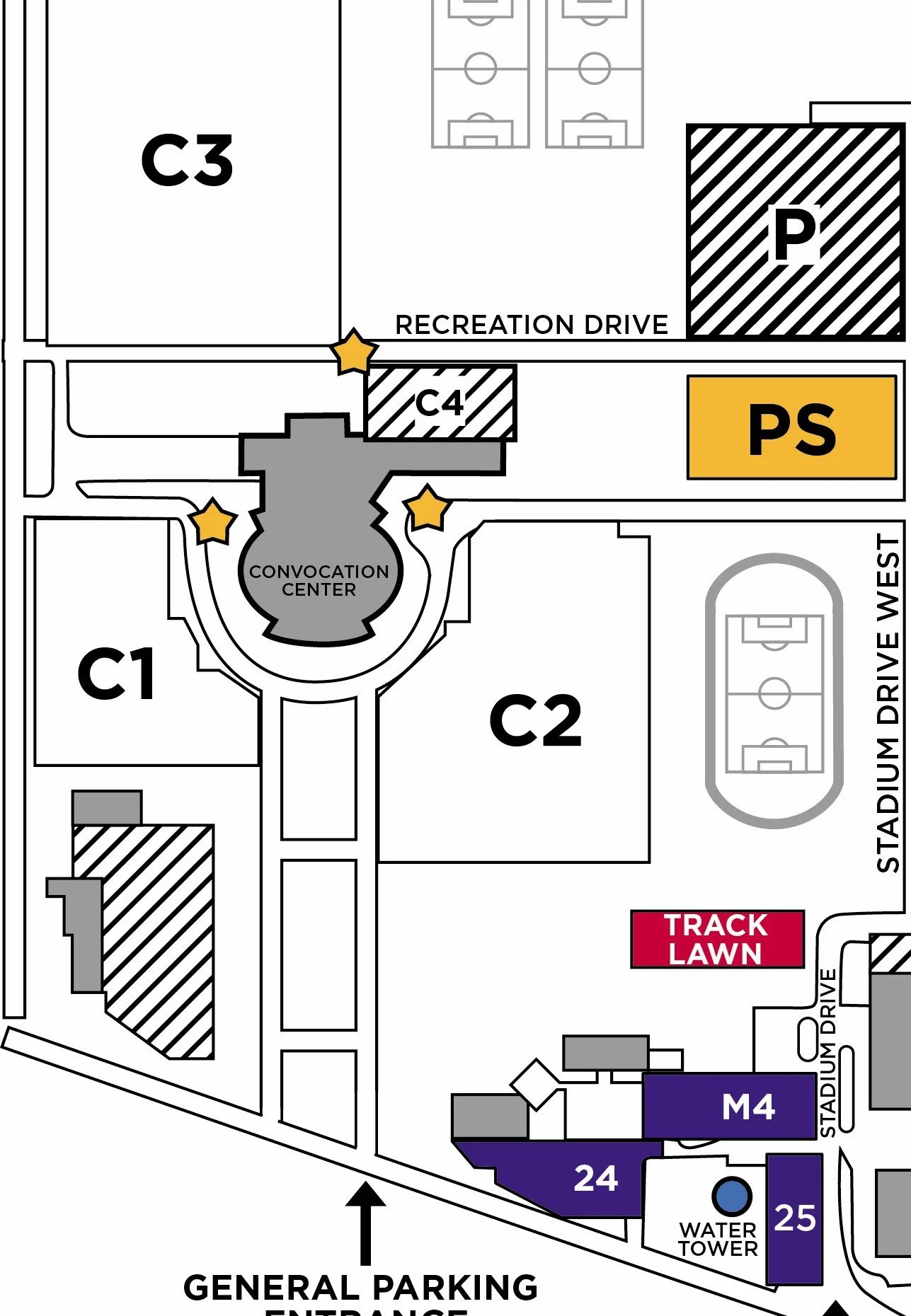 PARKING: Participants should be dropped off at Entrance 2, located next to Lot C2 (see map below).